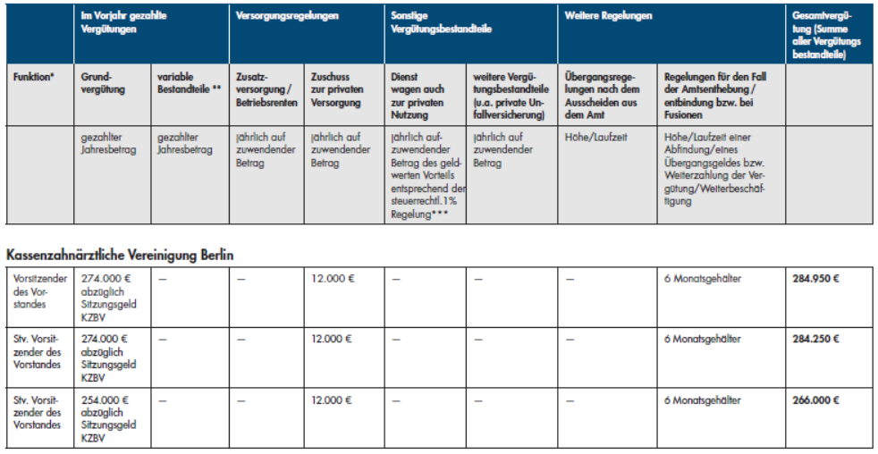 Vorstandsvergütungen KZBV und KZVen 2025 – Vorstandsvergütungen KZV Berlin